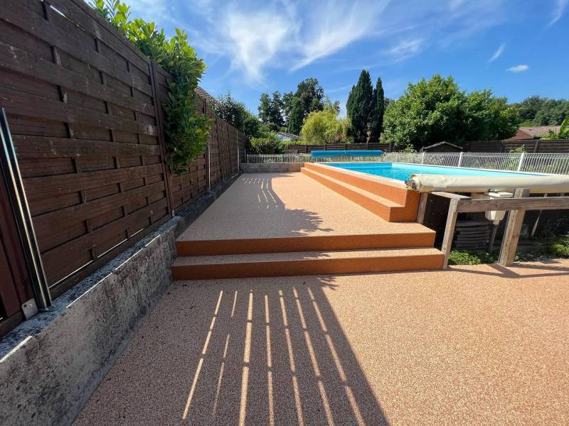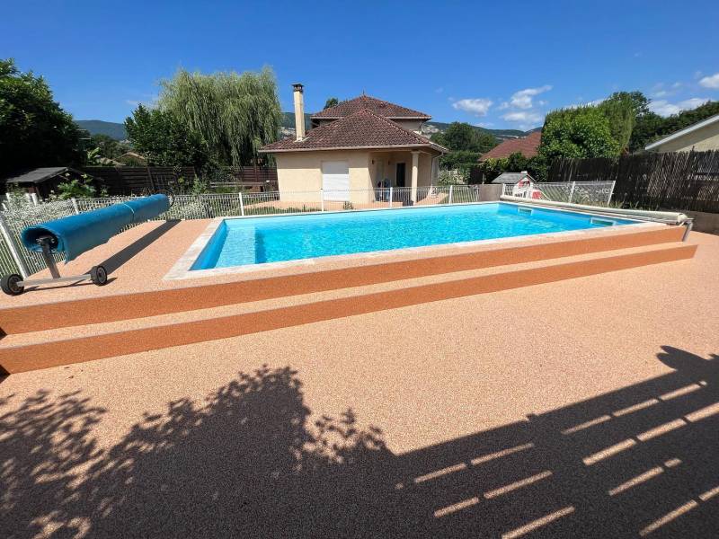 Pose de résine en moquette de pierre pour plage de piscine design à Villette d'Anthon proche Lyon