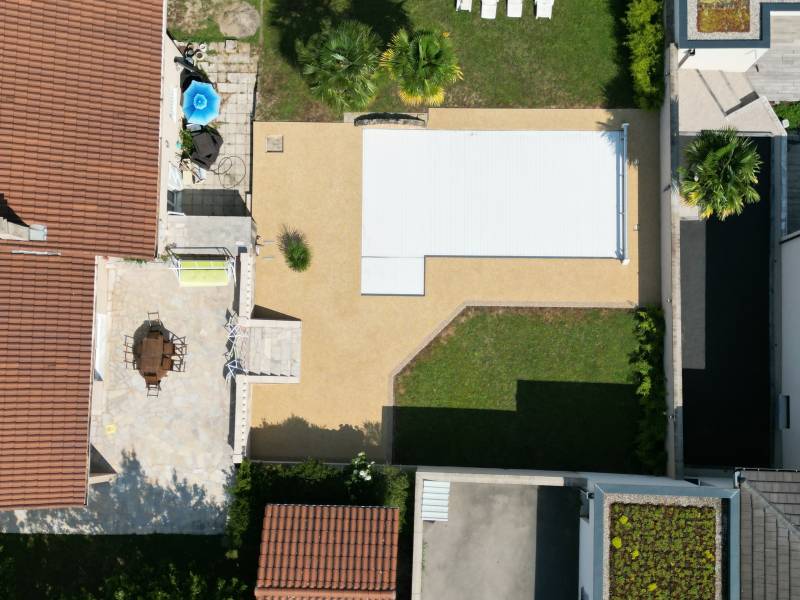 Préparation du support par ponçage au disque diamant sur tout le pourtour des plages de la piscine. Pose du primaire d'accroche en epoxy sablé à reflux.