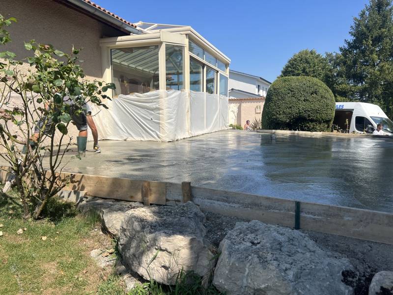 Notre équipe est à votre disposition pour toute pose de dalle béton pour vos travaux à Colombier Saugnieu et toute la région de Lyon.