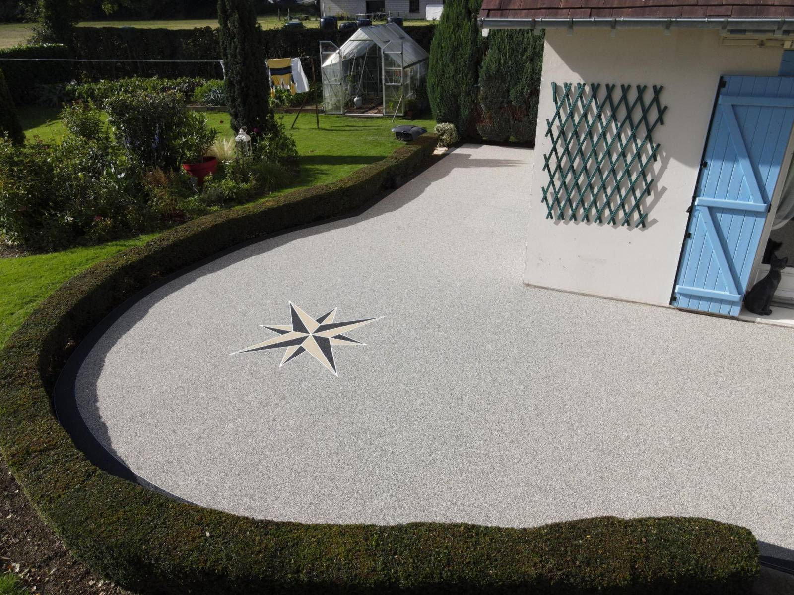 Pose d'une résine sur une dalle béton extérieure à Charette